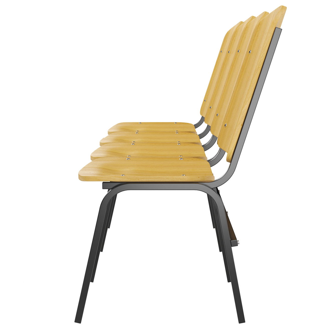 Спинка та сидіння виконані з гнутої фанери завтовшки 12 мм з HPL-покриттям. Поверхні оброблені та відшліфовані таким чином, щоб виключити гострі кромки та забезпечити комфортне зіткнення при тривалому сидінні.