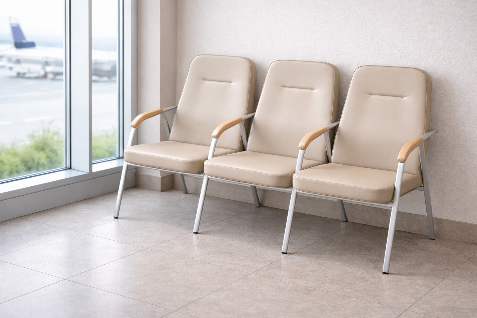 Тримісна секція крісел з м'якими сидіннями та підлокітниками — це зручне та естетичне рішення для зон очікування у поліклініках, бізнес-центрах, вокзалах та інших громадських просторах. Каркас виконаний із міцного металевого профілю з антикорозійним покриттям, стійким до інтенсивної експлуатації. Широкі сидіння та високі спинки оббиті щільним, легким у догляді матеріалом, забезпечуючи високий рівень комфорту навіть за умови тривалого перебування. Підлокітники з дерев'яними накладками створюють додаткову зручність для відвідувачів та надають секції завершеного, сучасного вигляду. Ергономічна конструкція та практичні матеріали роблять цю модель універсальним рішенням як для класичних, так і для сучасних інтер'єрів.