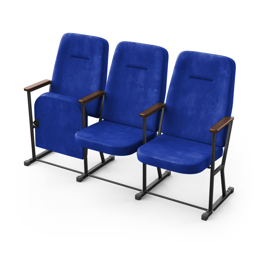Крісло Акорд (3 секції, синій колір), Підлокітник: Горіх Еко
