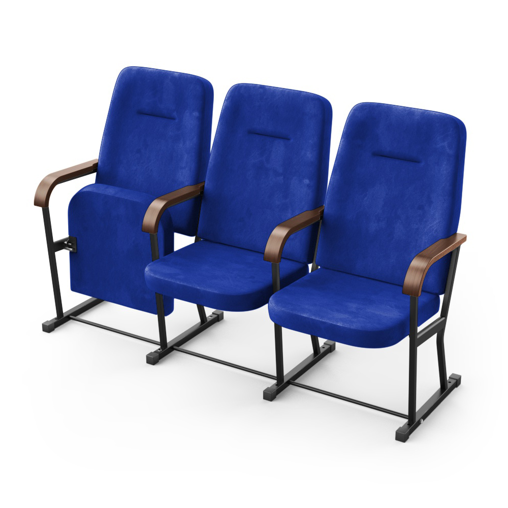 Крісло Акорд (3 секції, синій колір), Підлокітник: Горіх Еко