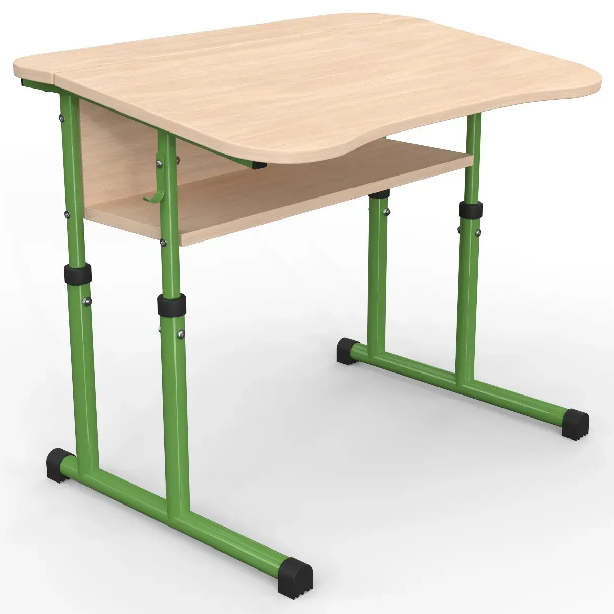 Металевий каркас столу виготовляється з круглої труби, має сучасний дизайн та мінімальну кількість зварних швів. Покриття – зносостійка порошкова фарба. На каркасі є гачок для портфелів (ранців).
