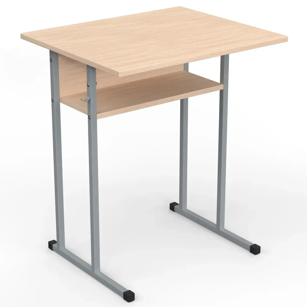 Металевий каркас столу виготовляється з профільної труби, має сучасний дизайн та мінімальну кількість зварних швів. Покриття – зносостійка порошкова фарба. На каркасі є гачок для портфелів (ранців).