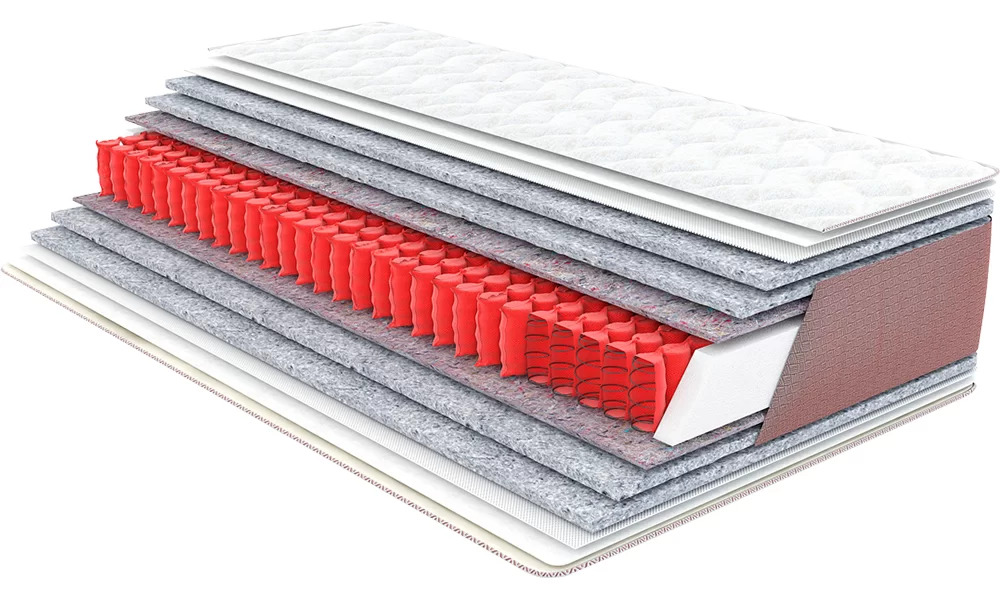 Усиленный блок независимых пружин из проволоки большего диаметра. Такое решение позволило увеличить поддерживающую способность матраса и создать комфортные условия для людей с повышенной массой тела