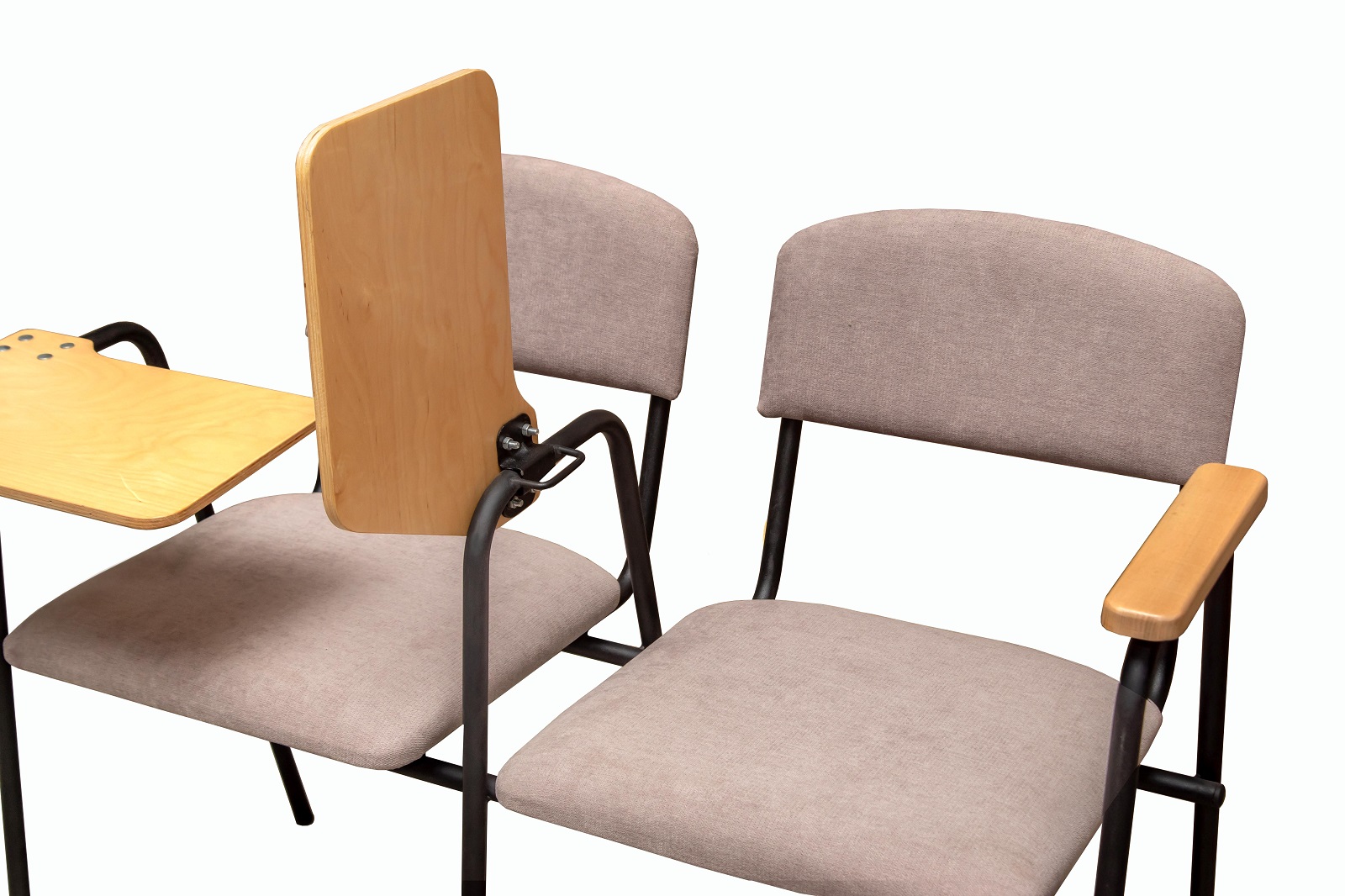 Секция стульев со столиком Сиена представляет собой удобное и функциональное решение для учебных аудиторий, конференц-залов и бизнес-центров. Каркас выполнен из прочного металла, покрытого порошковой краской. Сиденья и спинки мягкие, обиты износостойкой тканью, что гарантирует комфорт при длительном использовании. Особенностью данной модели являются деревянные подлокотники и столик-пюпитр, которые могут быть тонированы в нужный цвет в соответствии с интерьером помещения. Столик изготовлен из прочной фанеры и покрыт защитным лаком, устойчивым к влаге и механическим повреждениям. Он оснащён механизмом подъема и фиксации, позволяющим удобно разместить учебные материалы или ноутбук.