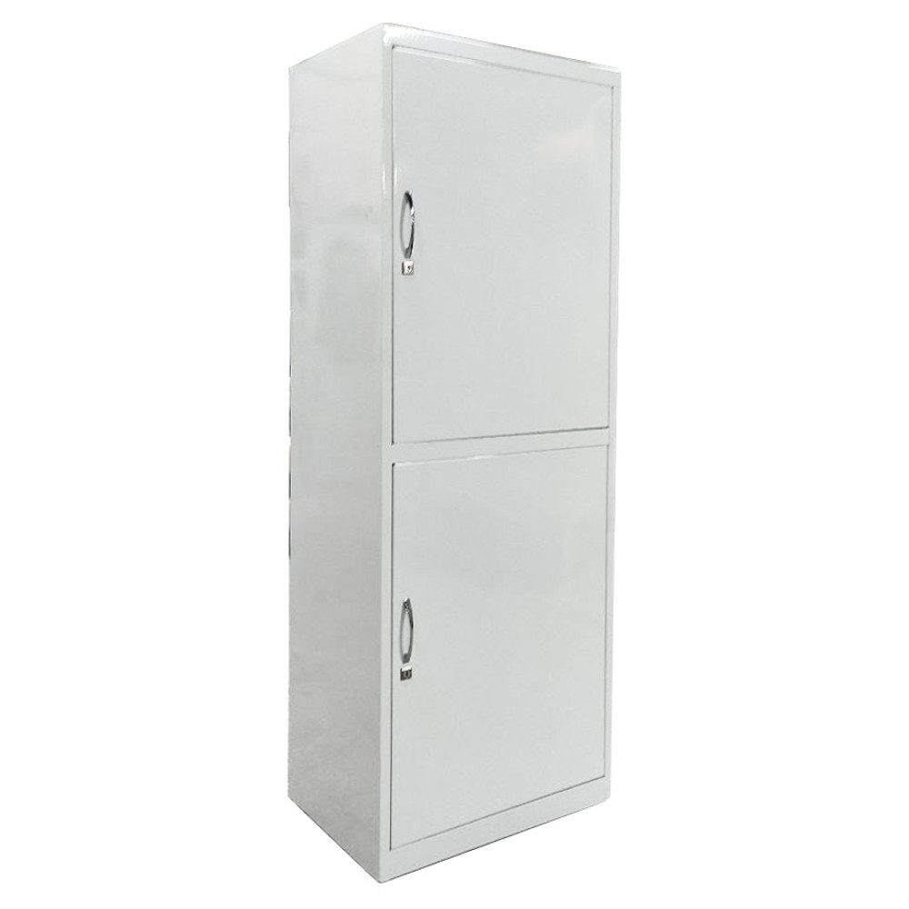 Шкаф разделен на два независимых отделения. В каждом отделении две металлические полки. Максимальная нагрузка на металлическую полку - 30 кг.