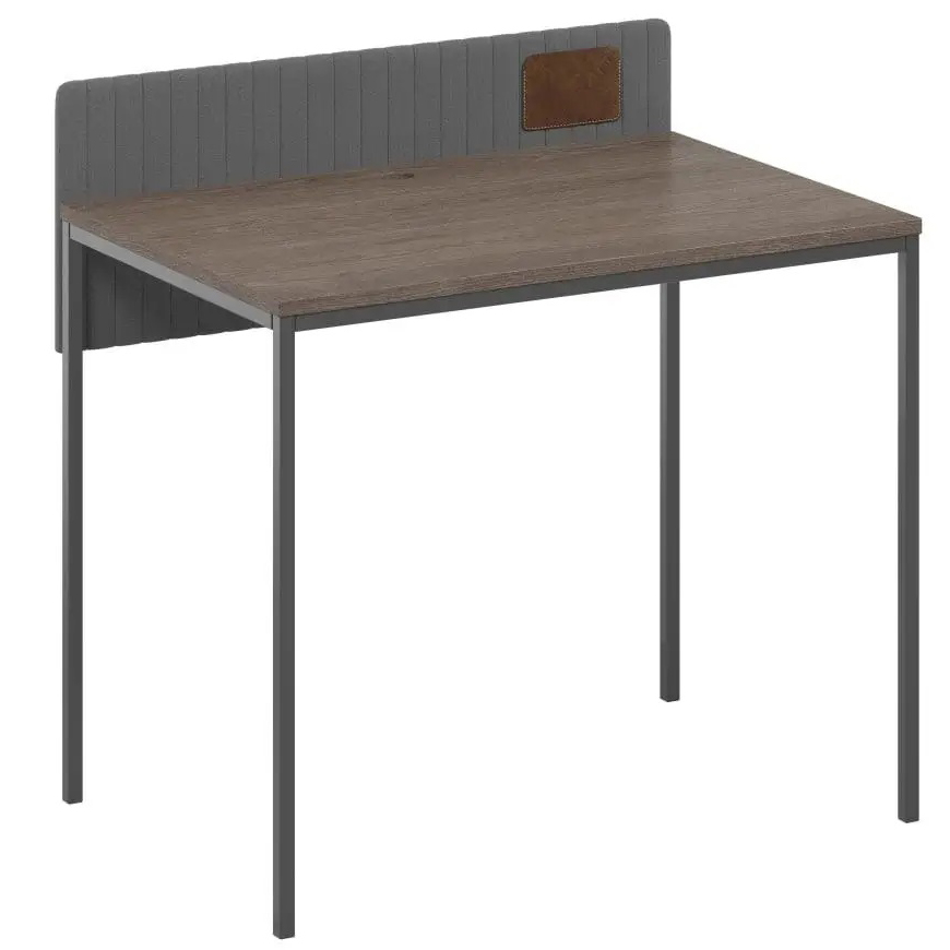 Разборной каркас стола Хоук выполнен из металлической профильной трубы 25*25 мм, окрашенной черной порошковой краской. Ножки стола с калибровкой по высоте. Столешница - ЛДСП, цвета на выбор – Дуб сонома, Ильм Бергамо, Кедр северный, Макао светлый. Панель обтянута серой тканью шенилл Alaska 97 с поролоновой подкладкой и возможностью прикалывания заметок на ткани. Карман для ручек и бумаг выполнен из натуральной кожи, коричневого цвета.