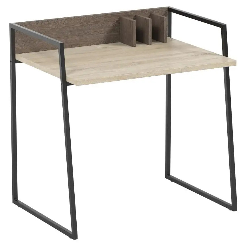 Разборной каркас стола Канги выполнен из металлической профильной трубы 20*20 мм, окрашенной порошковой краской цвета графит. Столешница - ЛДСП, цвет на выбор - Дуб сонома, Кедр северный, Макао светлый. Панель лицевая - ЛДСП, цвет - Ильм бергамо. В столешнице есть отверстие с заглушкой для проводов и держатели для бумаг в количестве 3 шт.