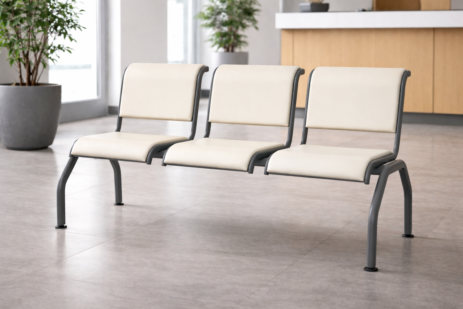 Трехместная секция стульев с мягкими накладками «РИМ 301» — это комфортное и современное решение для оформления зон ожидания в общественных и коммерческих помещениях. Каркас конструкции изготовлен из прочной стали с порошковым покрытием, устойчивым к износу и механическим повреждениям. В отличие от моделей с перфорацией, сиденья и спинки оснащены мягкими накладками, обеспечивающими дополнительный комфорт при длительном пребывании. Эргономичная форма кресел способствует правильной посадке, а прочный цельносварной каркас гарантирует устойчивость и надежность конструкции. Пластиковые заглушки на ножках защищают поверхность пола от повреждений. Универсальный дизайн и спокойная цветовая гамма позволяют гармонично вписать секцию в интерьер медицинских учреждений, административных зданий, офисов и других общественных пространств.