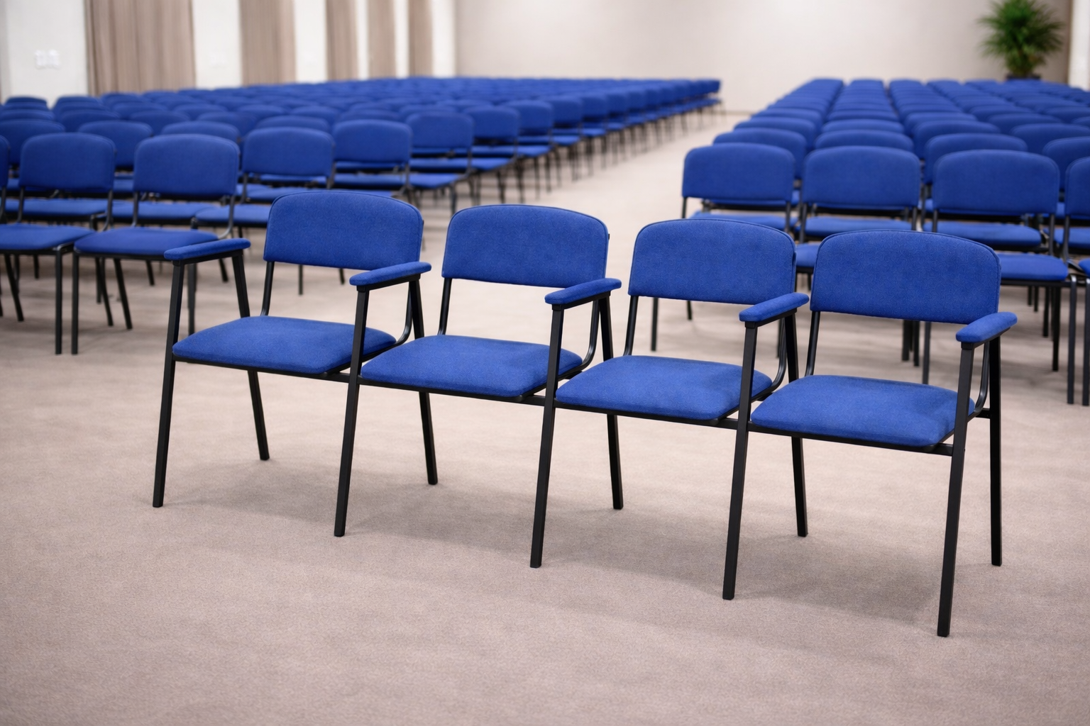 Секція із чотирьох стільців із підлокітниками — зручне та практичне рішення для залів очікування, конференц-залів, аудиторій та інших громадських просторів. Каркас виконаний із міцної металевої труби, що забезпечує високу надійність та стійкість конструкції. Сидіння та спинки м'які, з наповнювачем із ППУ підвищеної жорсткості оббитого зносостійким матеріалом.